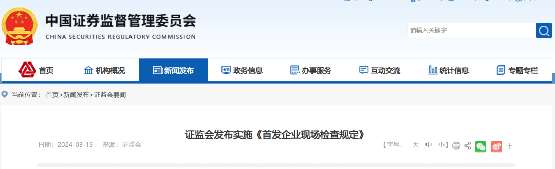 3月15日晚间,证监会发布实施《首发企业现场检查规定》、修订实施《首次公开发行股票并上市辅导监管规定》