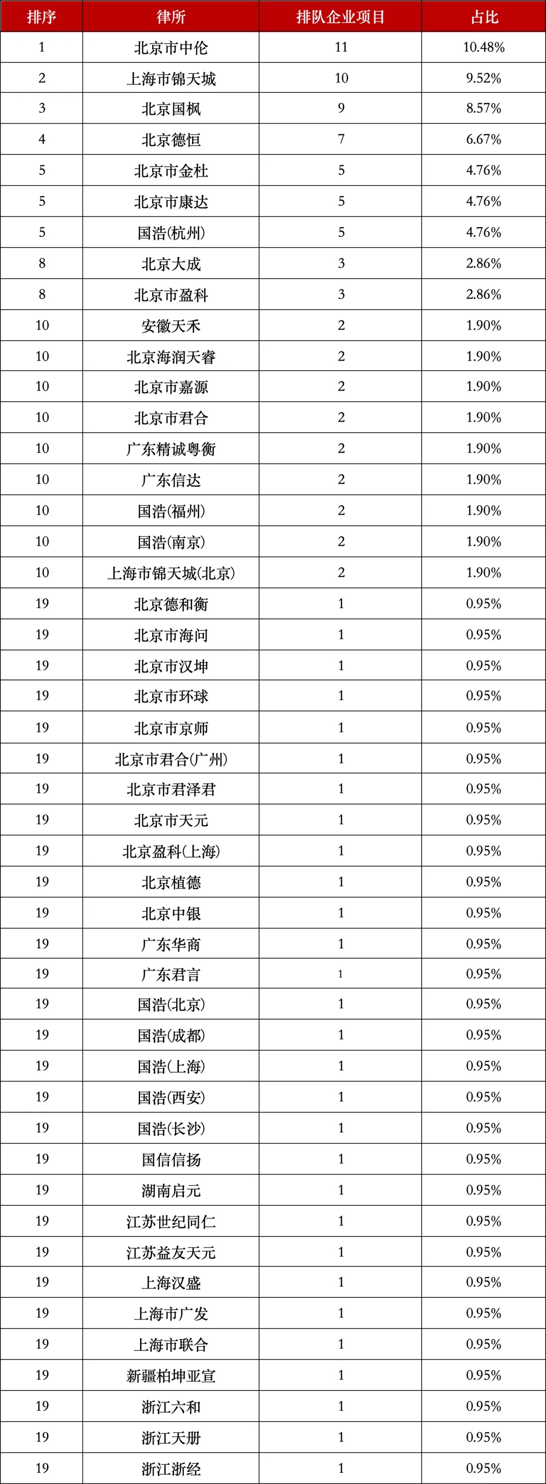 共有27家会计师事务所担任了105家北交所排队企业的IPO审计机构,项目量排名情况如下: