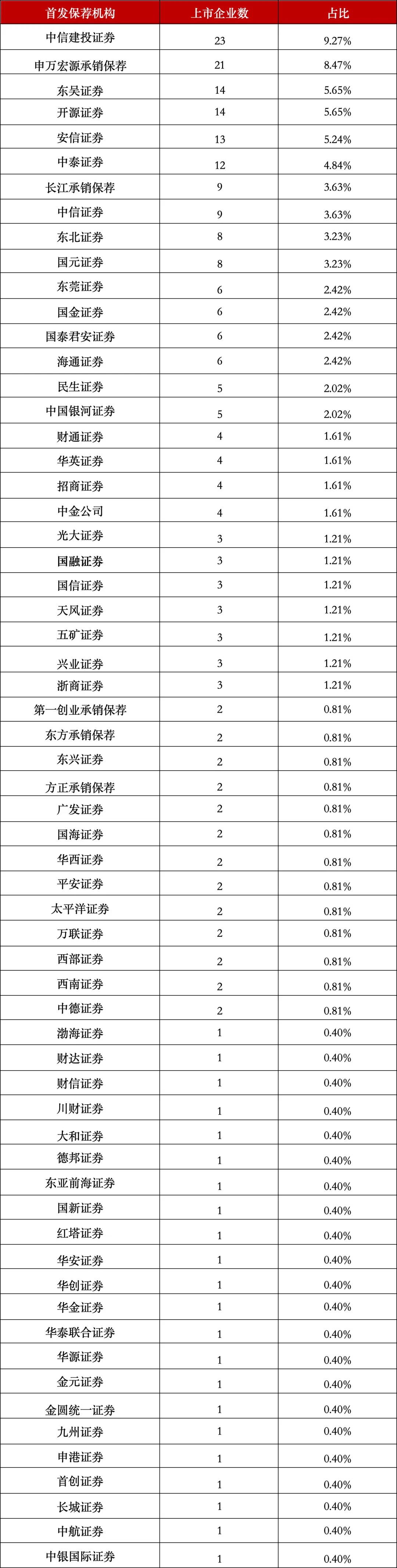 中信证券、长江承销保荐、东北证券、国元证券等处于第三梯队。